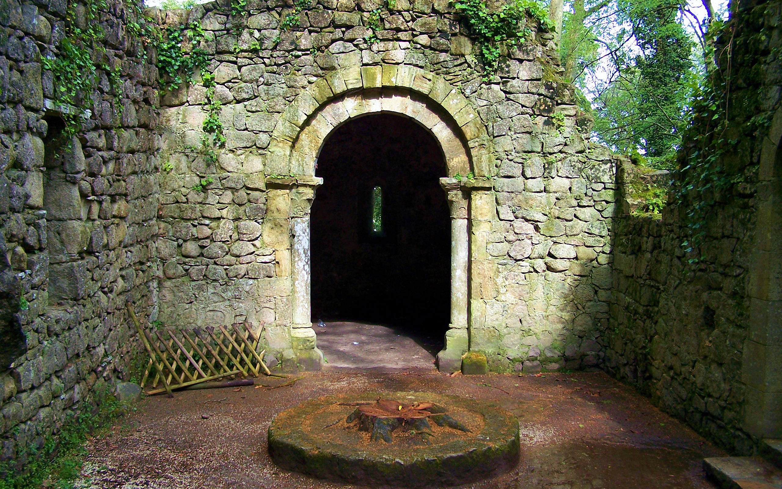 This chapel retains two interesting Romanesque doorways and in the chancel are traces of fresco paintings, as well as several tombs from the former medieval necropolis.
