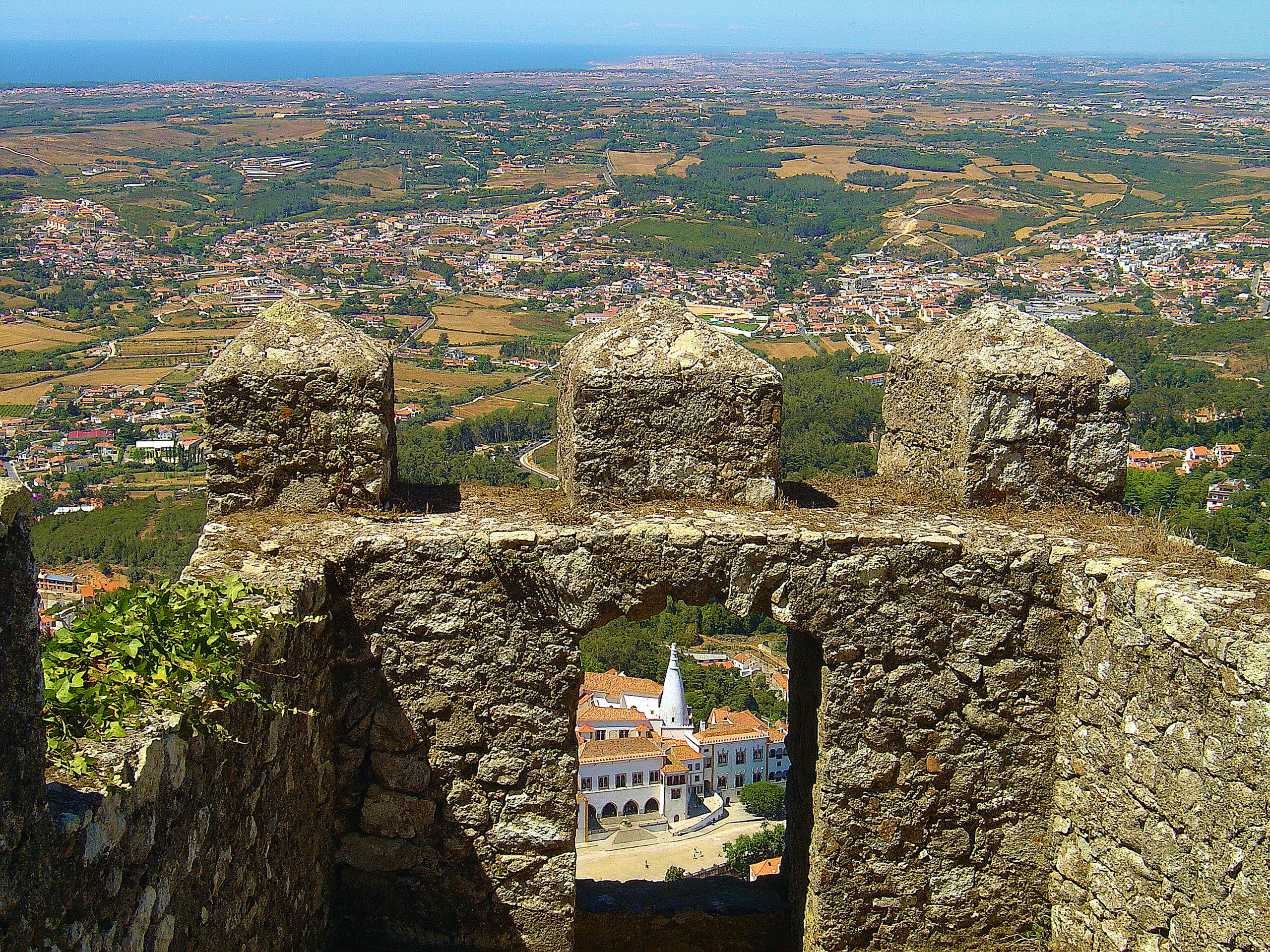 From the top of the walls, it is possible to admire Sintra and its Palace, the Pena Palace, the ocean's coastline, the Praia (Beach) das Maçâs, the town of Ericeira & Mafra and the hills of Sintra, covered in green and dotted with beautiful homesteads and romantic chalets.