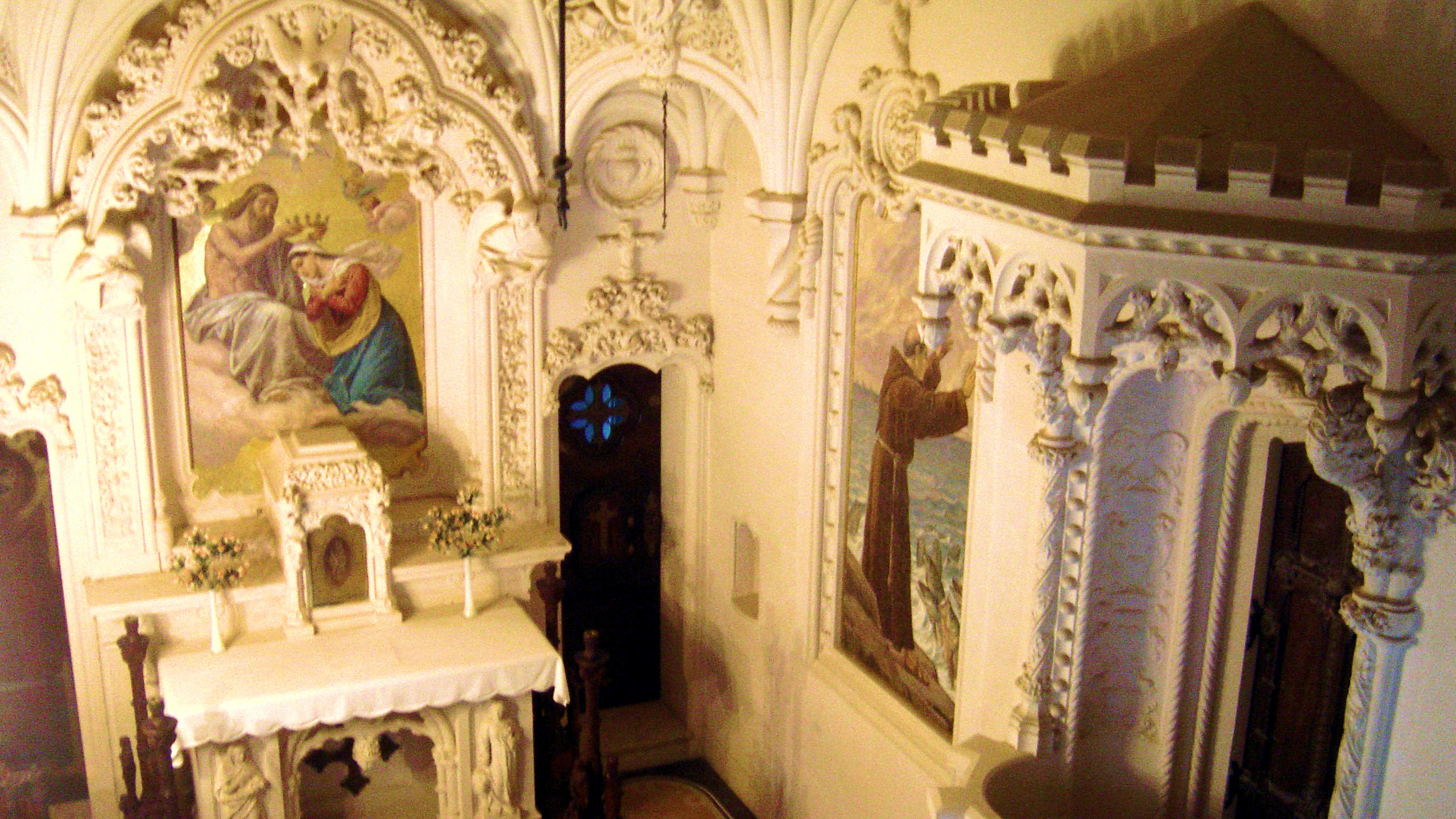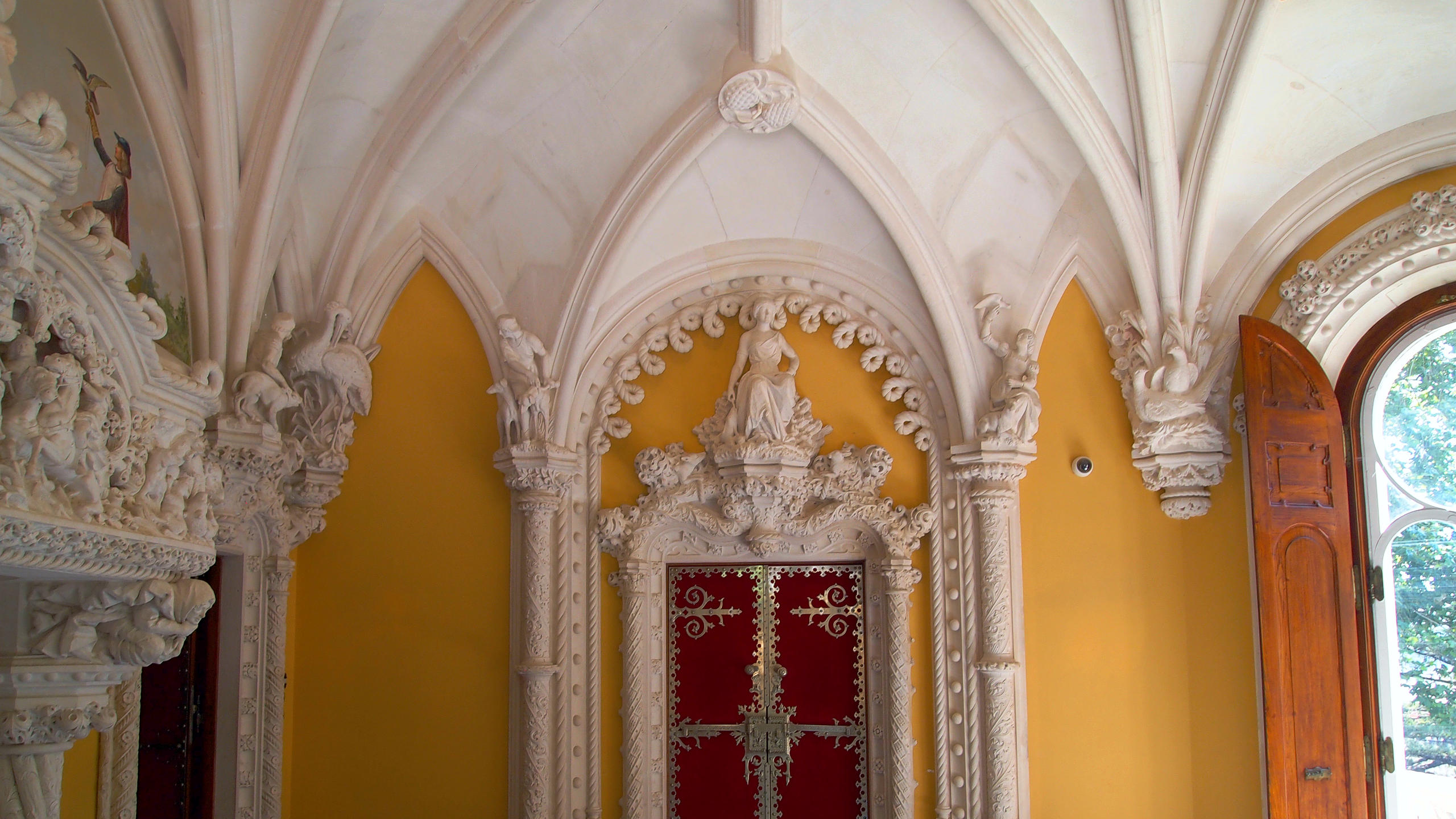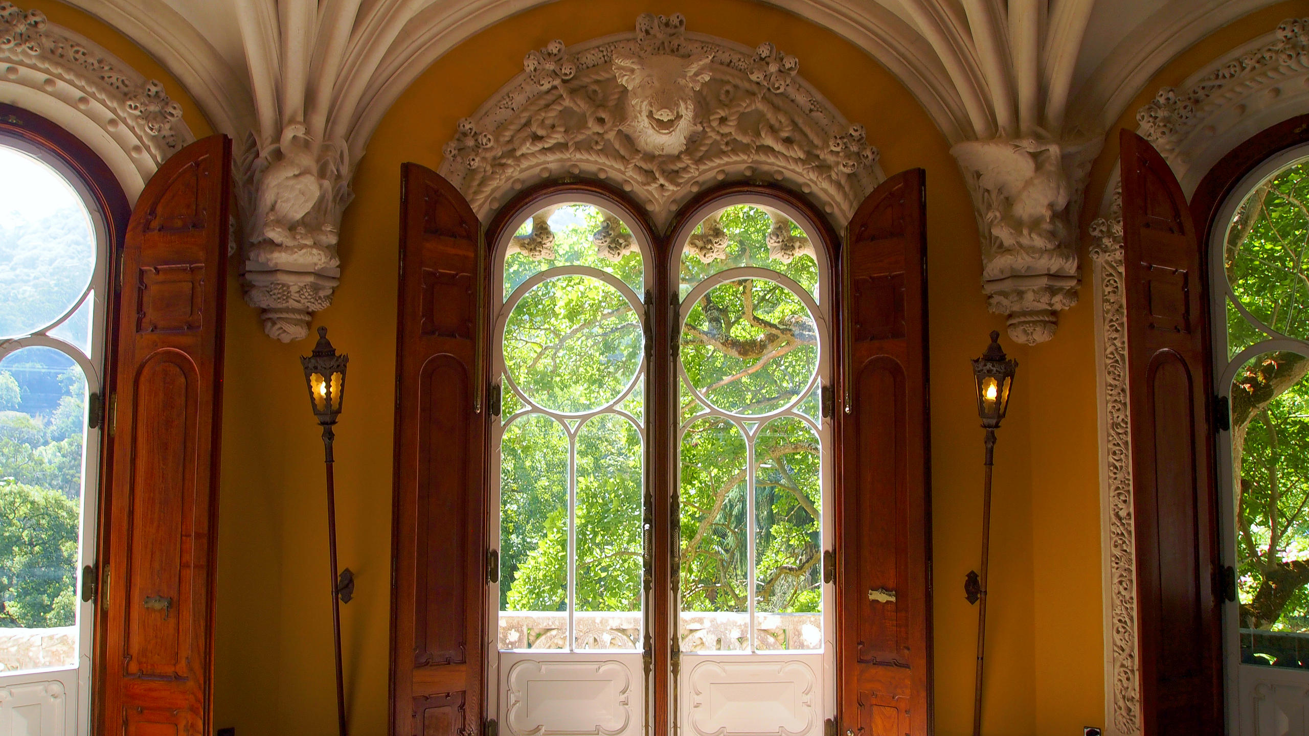 Carvalho Monteiro , profoundly influenced by the 'revivalist' Neo-Manueline architecture of the times, took inspiration for the construction of the palace and its chapel from the structural and decorative eclecticism of the Pena Palace and the Neo-Manueline style of the Palacio do Buçaco designed by the scenographer-architect Luigi Manini (1848-1936).